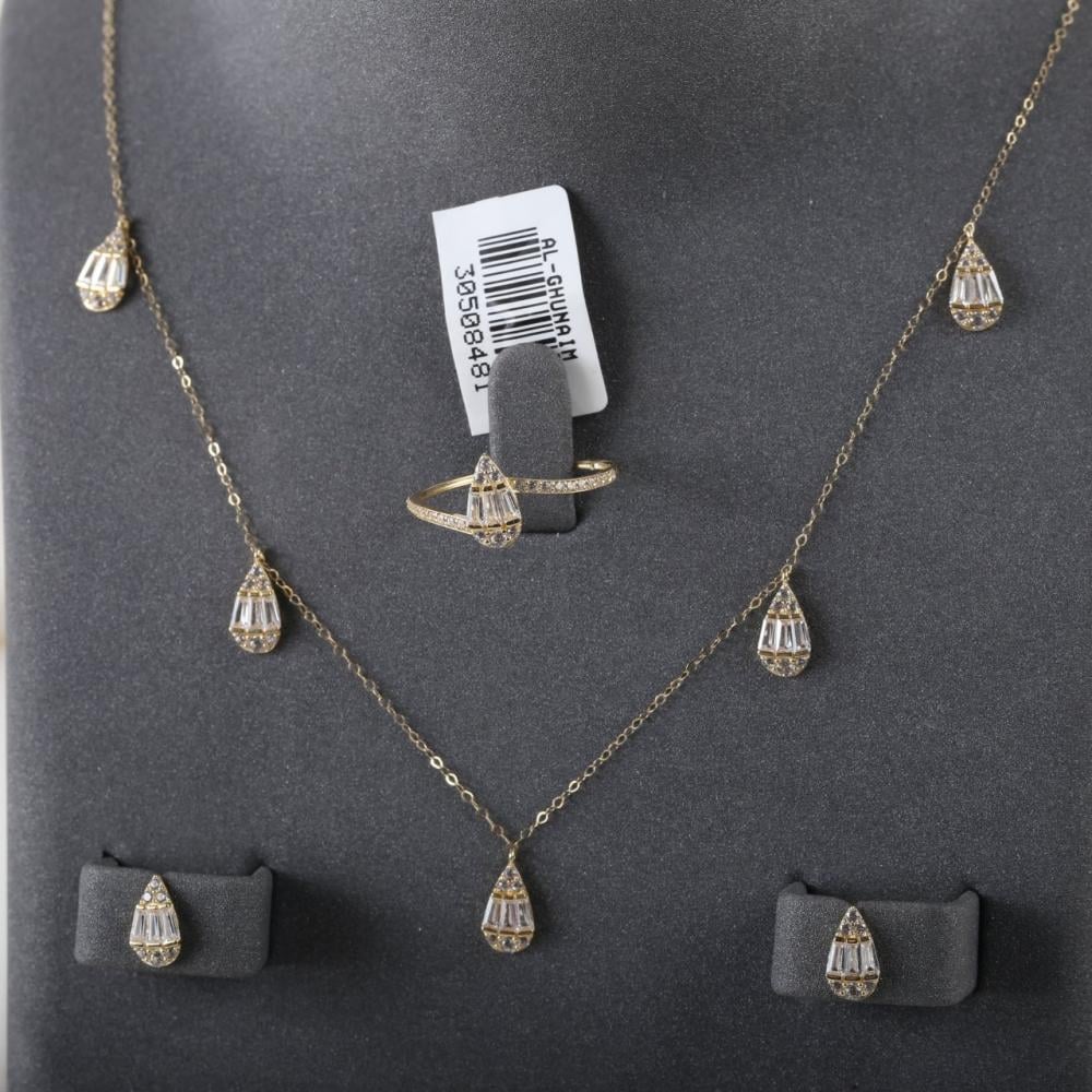 طقم ذهب عيار 18 جميل وأنيق مناسب للإهداء والإستخدام اليومي لتعززي من إطلالتك من مجوهراتنا