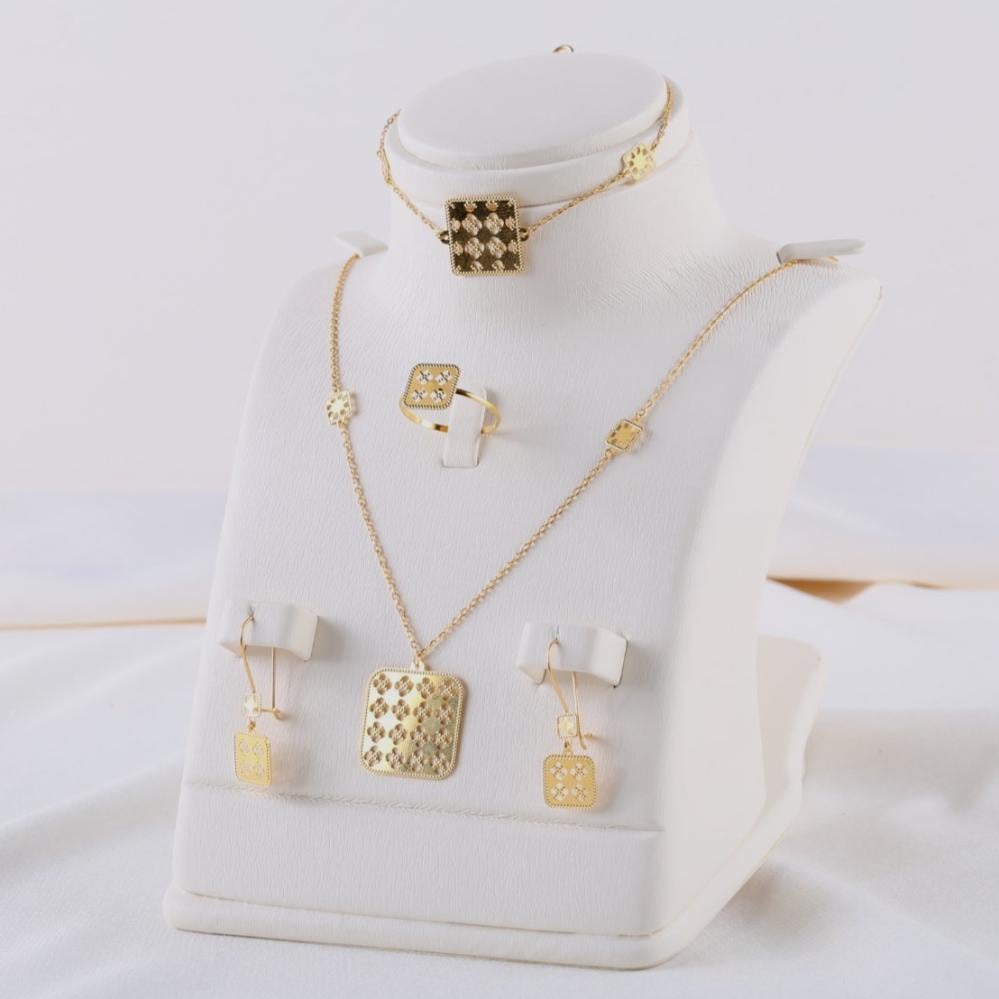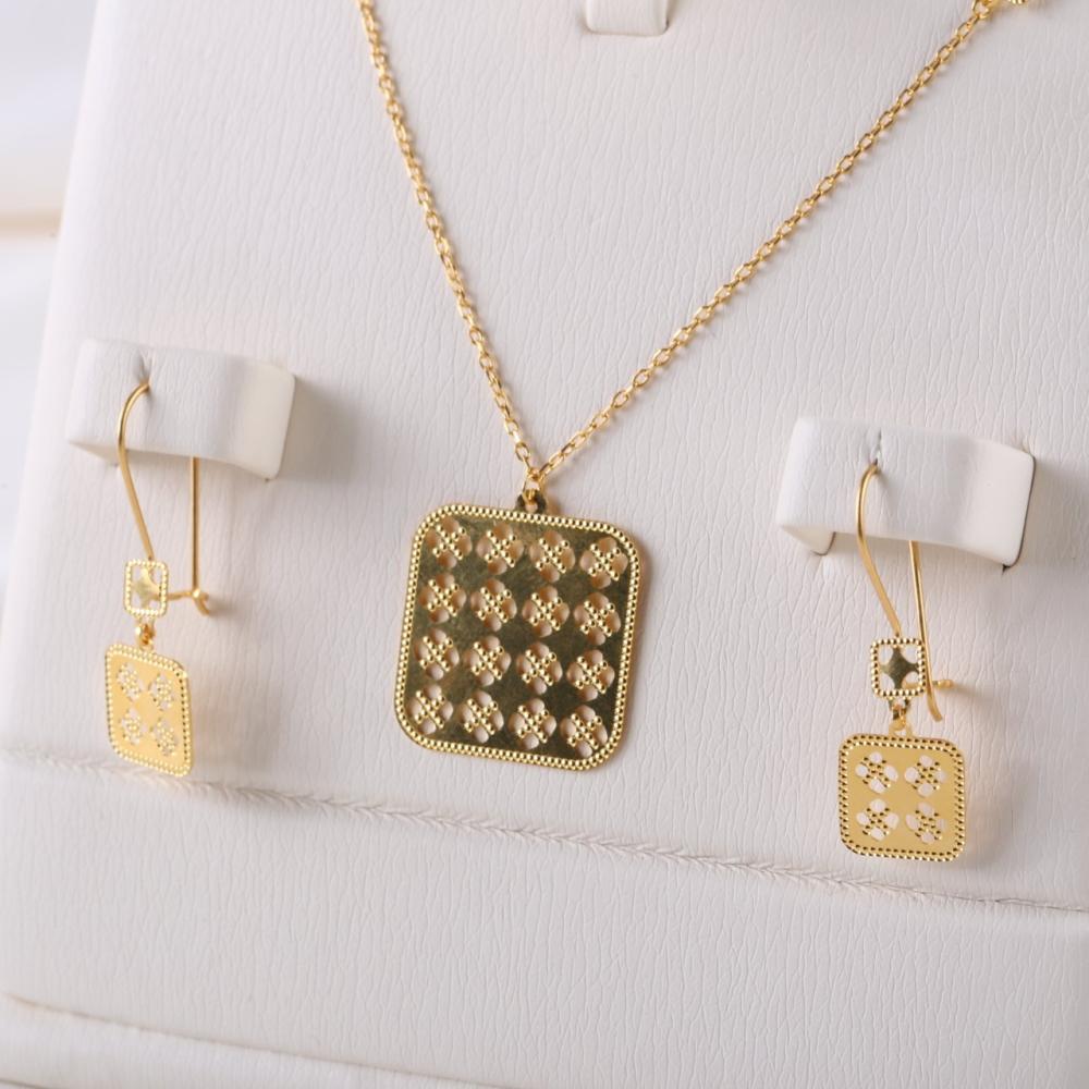 طقم ذهب عيار 21 جميل وانيق لتعززي من فخامتك من مجوهرات الغنيم