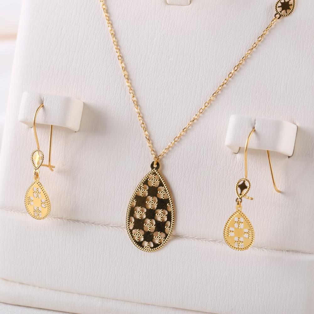 طقم ذهب عيار 21 جميل وانيق لتعززي من فخامتك من مجوهرات الغنيم