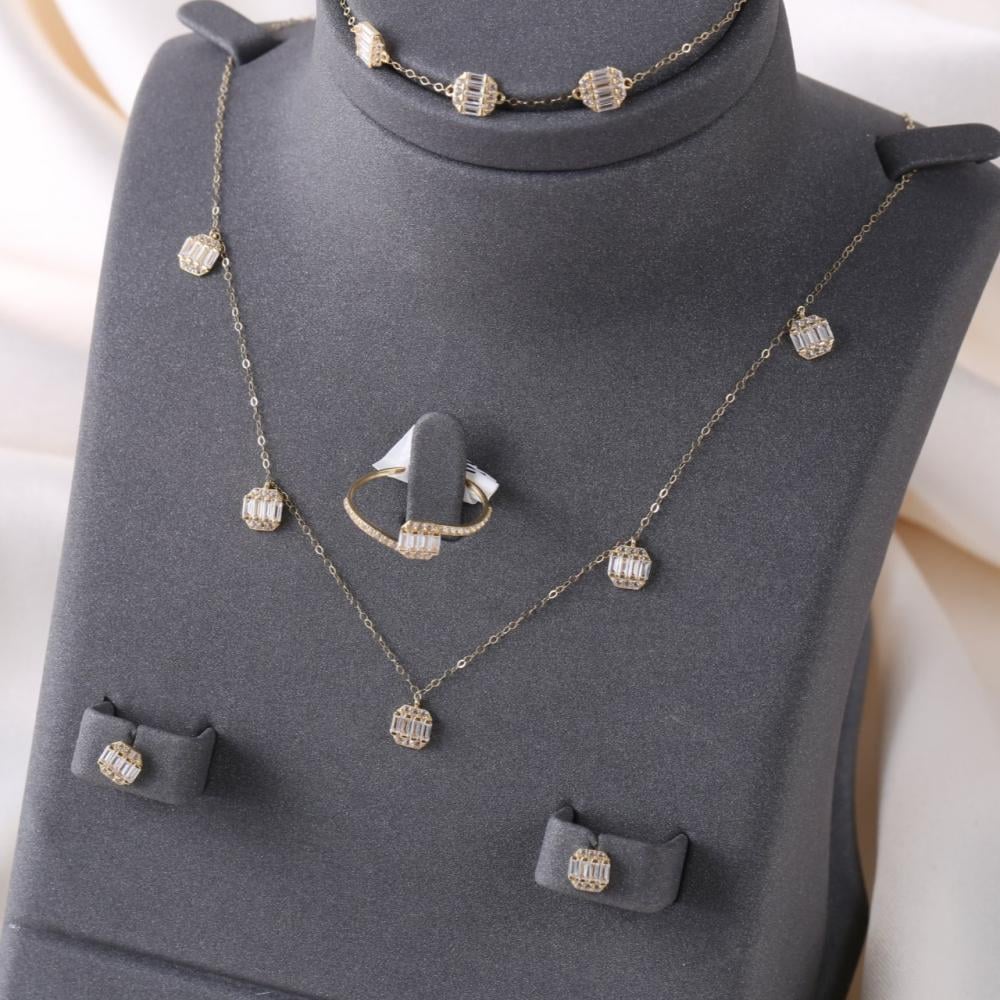 طقم عيار 18 مميز وجميل لإطلاله فخمه من مجوهرات الغنيم