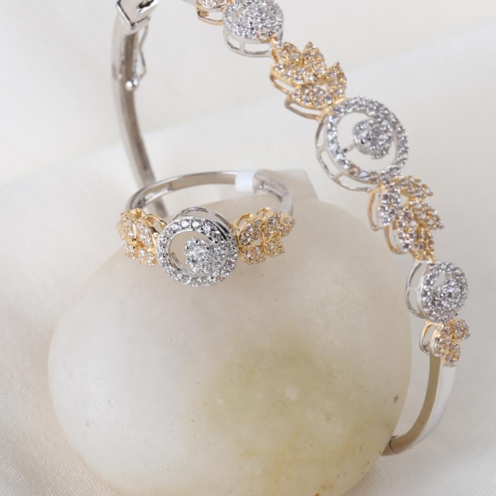 اسواره وخاتم ذهب عيار 18 مميزه وفريده لإطلاله فخمه من مجوهرات الغنيم