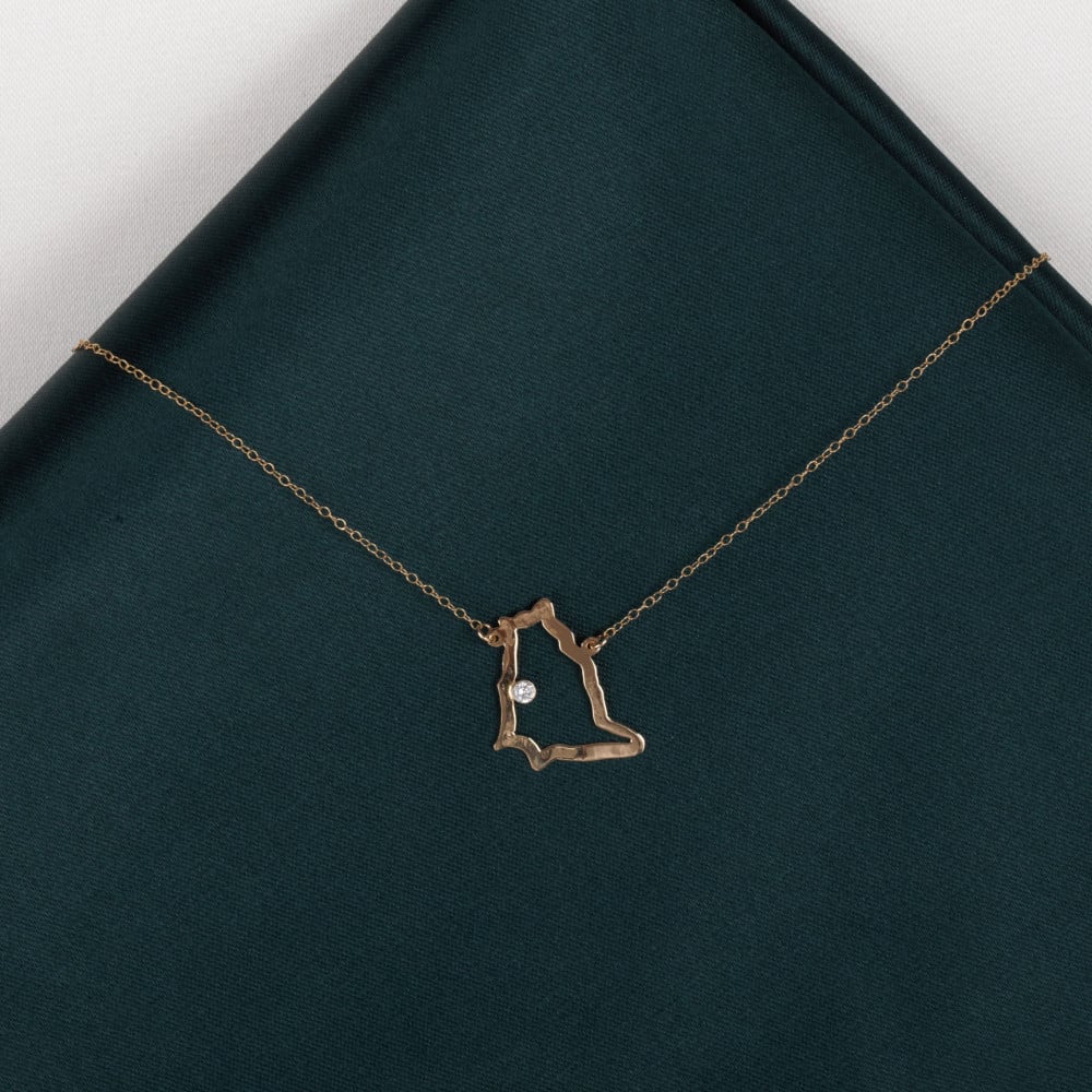 عقد على شكل خريطة المملكة العربية السعودية قطعة ذهب فريدة من نوعها تجسد جمال وأهمية المملكة.